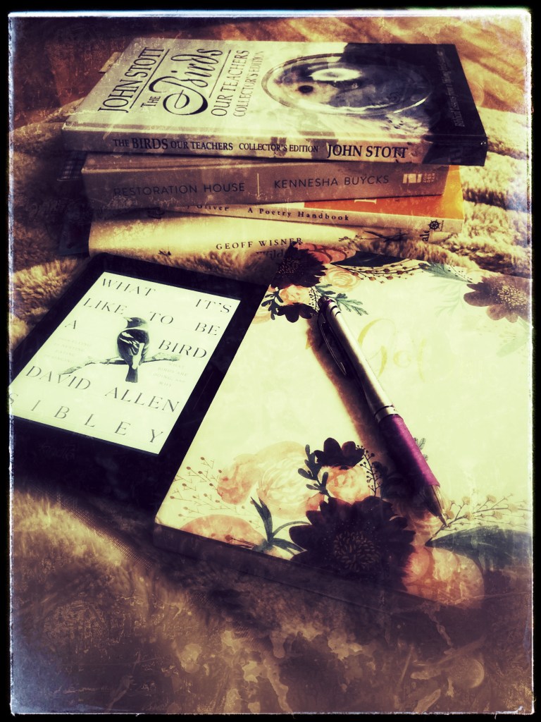 I sit shifting between one book and then another; my interests far ranging as an image or new understanding sends me down another path and I happily traipse, chasing wisdom. In between I unite pen to paper and my hand can barely keep pace with the musings rushing from my head — a jumble of beautiful thoughts. I move from chalk paint restoration (preparation and finishing is everything) to poetic tradition (constancy of rhythm, metrical form, imagery & metaphor) to Sibley’s guide to birds and Stott’s biblical lessons based on his birdwatching observations (140 species of owls; morning bird song is known as the “dawn chorus” — I now know why I love waking early because this concert begins at 4am). This is a wondrous earth filled with fascination upon fascination, so much to learn. All of the how to & why books are secondary to the moments I am truly lost in art — viewing a Monet or Van Gogh, listening to Casals play the cello, comprehending a new line of poetry, marveling at a new bloom, witnessing the dapple of light through the trees, watching a winged singer on a high branch, chewing on the nuances of a favorite bible verse while listening to that bird and around him the wind through the leaves — a symphony complete. Oh, glorious God, thank you for creation and my blessed part in it!