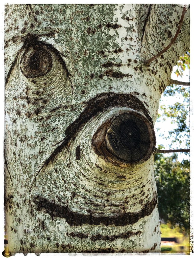 white tree-skin to a knot like a snout,