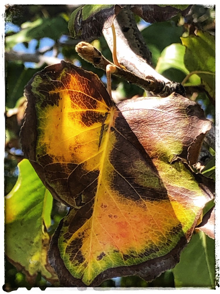 of new buds, blue skies, bright sun,