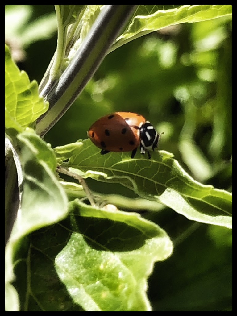 We talked this afternoon of worlds/ That herd within the sky;/ Of all the majesty and reach/ Of stellar space, till I/ Was grateful to the ladybug/ That crawled across my dress,/ Just for its foolish speckled back,/ And for its littleness.