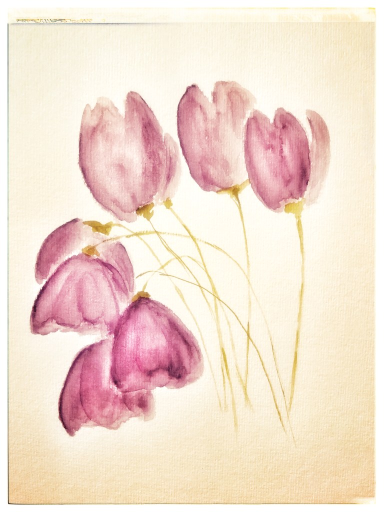 Purple petals droop,